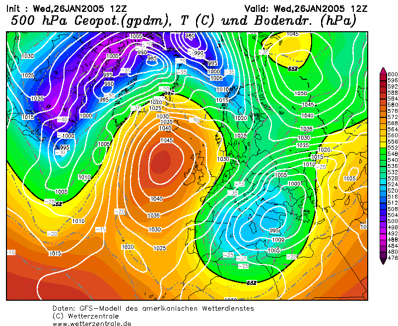 Das die kalte Luft dort unten ankommt hängt natürlich auch mit dem starken Hochdruckgebiet zusammen, was sich zur Zeit über dem Atlantik befindet und dem sich über Süditalien befindenden Tiefdruckgebiet.