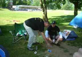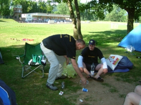 Denn er hat sonntags morgens nichts besseres zu tun, als den Zeltplatz aufzuräumen![]()
