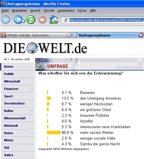Ich entsinne mich eines Bildes, das schon einmal die Vorzüge der Erderwärmung sichtbar machte ... ![]()