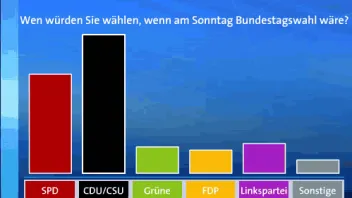 Nach der am Donnerstag veröffentlichten Erhebung für den ARD-Deutschlandtrend verliert die Union zwei Prozentpunkte und kommt auf 41 Prozent. Die SPD verbesserte sich im Gegenzug um zwei Punkte und kam auf 34 Prozent. Die Grünen erhielten gegenüber der vorangegangenen Umfrage unverändert sieben Prozent, die FDP verbessert sich um einen halben Prozentpunkt und erreichte 6,5 Prozent. Die Linkspartei gab um 0,5 Prozentpunkte auf 8,5 Prozent nach. Damit liegen Union und FDP mit 47,5 Prozent zum ersten mal seit Anfang August im ARD-Deutschlandtrend zwei Prozentpunkte hinter SPD, Grünen und Linkspartei mit zusammen 49,5 Prozent.