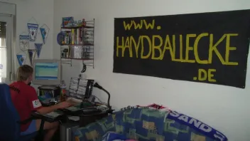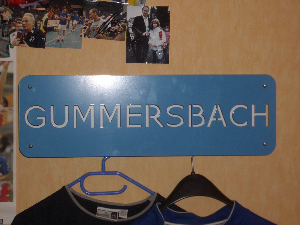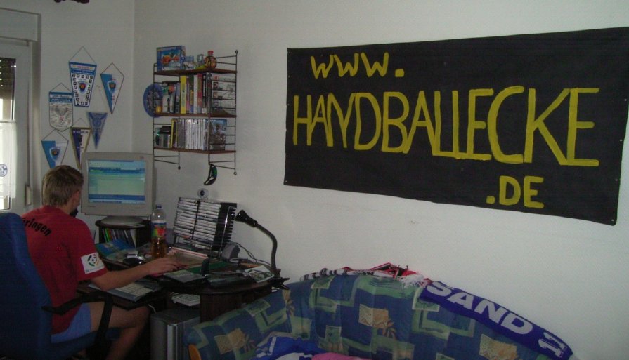 - im Regal: Handball-Trikots, Schals, Handball mit Unterschriften, Autogrammkarten etc.