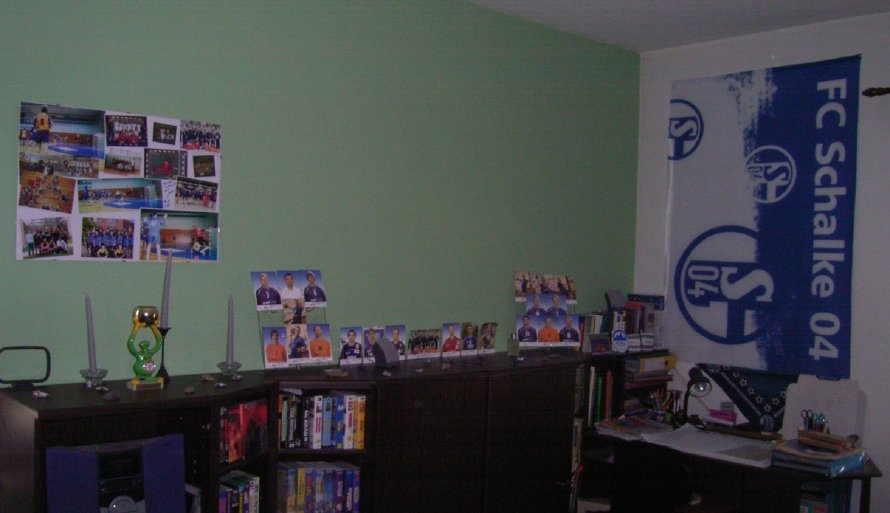 - dazu noch an der Wand: ein Christian Schöne Schal und der SCM-Schal zur deutschen Meisterschaft
