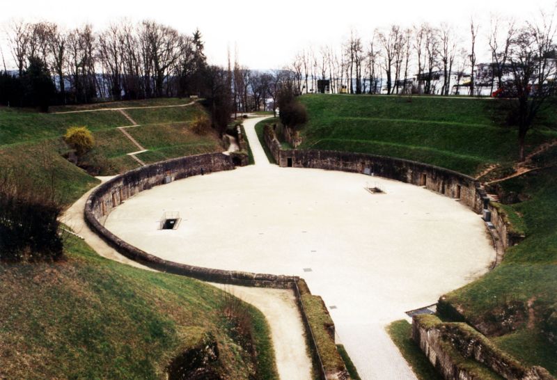 Das ist das Amphitheater in Trier. Das um 100 n. Chr. fertiggestellte Bauwerk liegt am Petrisberg und bot circa 20.000 Besuchern Platz bot.