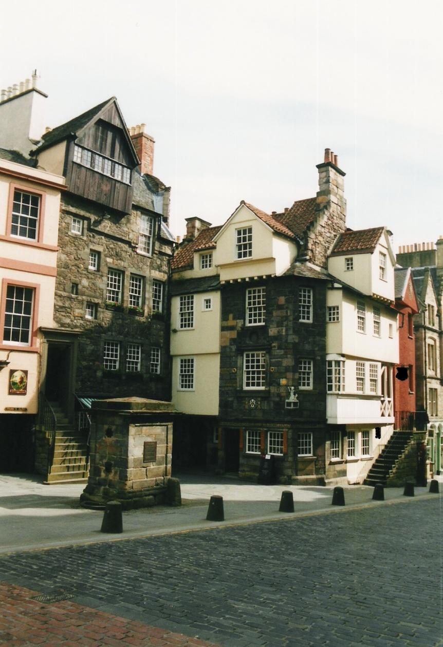 Es ist das John Knox House in Edinburgh. Das Haus wurde 1490 erbaut. Der schottische Reformator John Knox lebte in diesem Haus von August 1572 bis er dort am 24. November 1572 starb. Er gab dem Haus den heutigen Namen.
