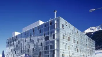 Das ist das Sport- und Designhotel "Cube Savognin" in Graubünden.