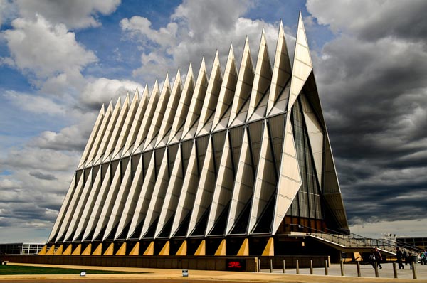• Das ist die „Cadet Chapel“ in Colorado Springs.