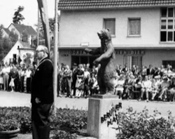 Na ja, zumindest geht es dem Bären noch besser, als dem damaligen Bürgermeister der vor ihm steht. Der sieht sich nämlich schon lange die Radieschen von unten an.