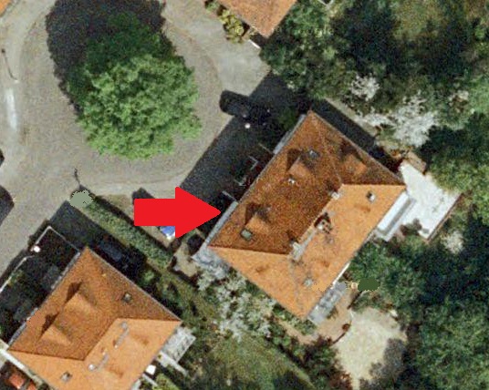 Wer wohnte hier (siehe roter Pfeil) und wo steht das Haus?