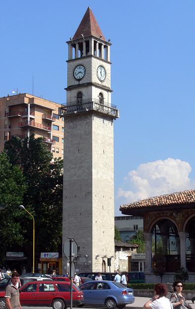Uhrturm in Tirana, Hauptstadt von Albanien. Erbaut 1830 unter der osmanischen Herrschaft.