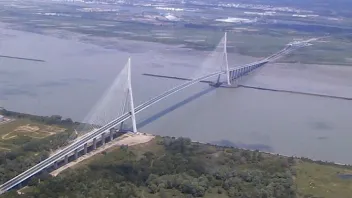• Es dürfte sich hierbei um die Sutong-Brücke handeln, die bei Nantong (China) den Yangtse quert.