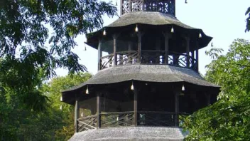 Der 25 Meter hohe Chinesische Turm wurde 1789/1790 nach einem Entwurf von Joseph Frey von Johann Baptist Lechner erbaut. Den damaligen Gepflogenheiten entsprechend wurden Landschaftsgärten im englischen Stil gerne mit Gebäuden und Denkmälern gegliedert. Das Vorbild für den Chinesischen Turm steht in den königlichen Kew Gardens im Südwesten Londons. Während des Zweiten Weltkrieges brannte der Chinesische Turm im Juli 1944 nach Bombenangriffen ab, 1951/1952 wurde er originalgetreu fünfgeschossig in Holz wiedererrichtet.