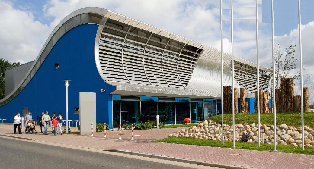 Das Gebäude gehört wohl zur aussterbenden Art der Rundsporthallen. Aber wo?