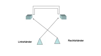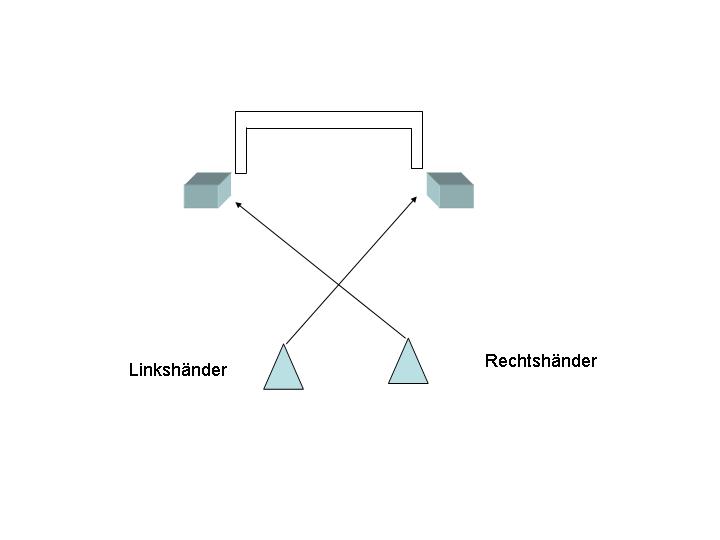 Für die Werfer ist es einfacher, wenn die Rechtshänder auf rechts stehen und die linke Kiste anvisieren und die linkshänder auf der anderen Seite.