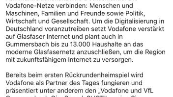 Momentan läuft eine große Werbeaktion für Glasfaseranschlüsse von Vodafone in Gummersbach. Das ist wohl ein riesiges Vorhaben in Zusammenarbeit mit der Stadt.