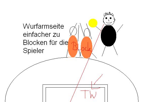 Und zwar, ich spiele im Tor und ich stelle (Appell vom Trainer) immer einen 2er-Block bei einem Freiwurf gegen uns.