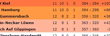 Genauso ist es leider. Kann es auch nicht mehr hören. Was bringt es einen großen zu ärgern, wenn man gegen die Mannschaften auf Augenhöhe nichts zählbares holt. Lieber verliere ich mit 10 Toren gegen Gummersbach, gewinne aber dafür gegen Hannover-Burgdorf.