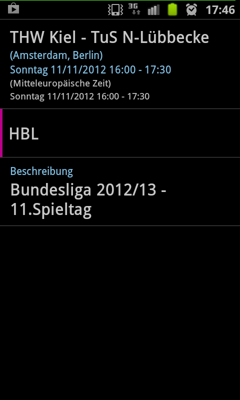 Auch wenn mein Smartphone auf NewYorker Zeitzone eingestellt ist, kommt folgender Eintrag zum 15:00 Kiel-Spiel: