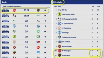 • Auf Handball.de genau derselbe Mist, der Ticker scheint 1:1 von der DKB Seite übernommen worden zu sein.Obwohl man auf der Seite leichter den Livestream der 2.Liga findet kommt nur der Stream zur 1.Liga.Ich hab den Kaffee auf 40 Minuten Zeit verschwendet für nix.