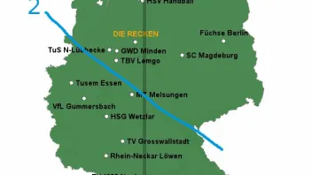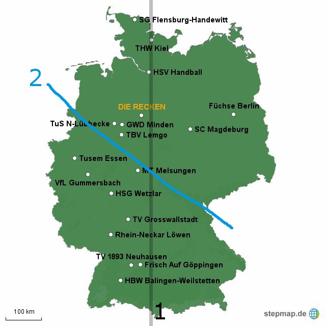 Ich habe mal versucht die einfachste Teilung (1) und die NO und SW-Teilung (2) auf einer Karte darzustellen, auf der auch die aktuellen Bundesligisten sind.