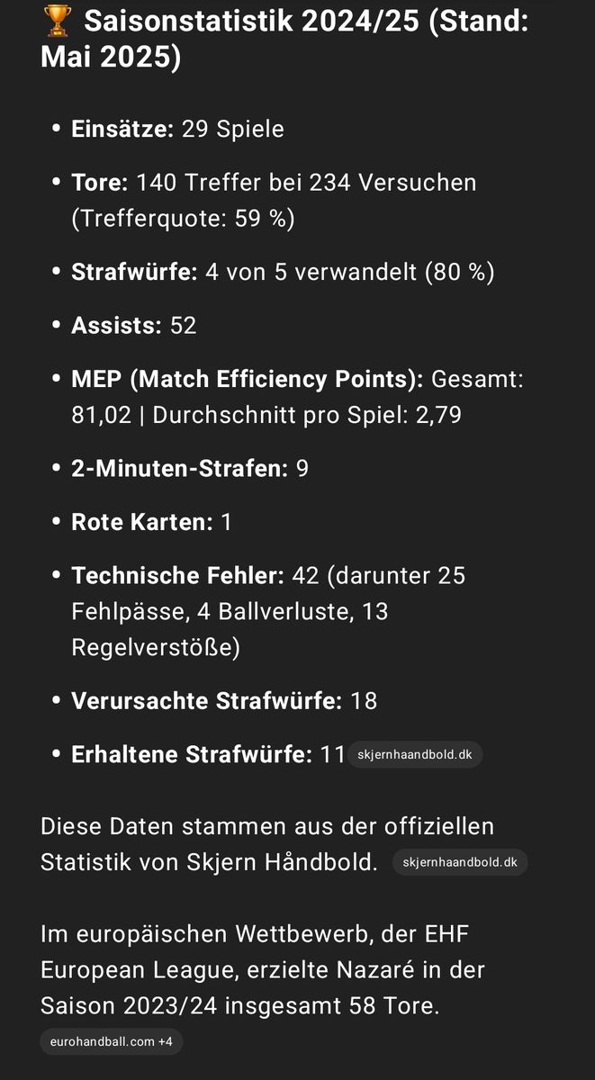 Zu Nazaré: spannender Spieler, aber irgendwie hab ich bei Portugiesen in der HBL immer Gomes im Kopf... (wobei Cavalcanti das jetzt schon deutlich souveräner löst und Nazaré ja auch schon das "skandinavische Feeling" aus Skjern kennt)