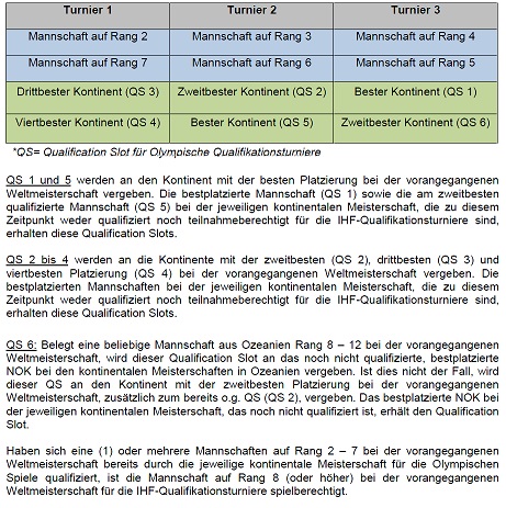 Im Hinblick auf die Qualifikation für Olympia 2016 ist jede Platzierung wichtig. Da die kontinentalen Qualifkationen erst in der zweiten Jahreshälfte 2015 beginnen, lassen sich noch keine Aussagen über die genaue Rangfolge der Mannschaften treffen. Aber Turnier 1 mit zwei europäischen sowie einem afrikanischen (z.B. Tunesien) und einem panamerikanischen Vertreter (Brasilien und Argentinien werden sich direkt qualifizieren) ist wesentlich leichter zu meistern als die beiden anderen Turniere mit je drei europäischen und einer asiatischen Mannschaft.
