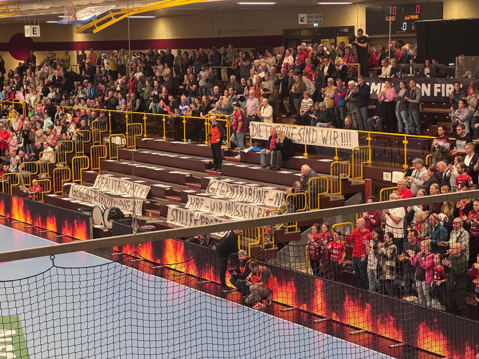 Neckarsulm hat sein Problem mit zwei Stuhlreihen vor der Gegentribüne gelöst ...