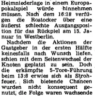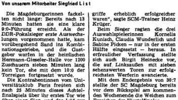 Yo. Ist aber sehr befruchtend und bringt Erkenntnisgewinn, wenn man gemeinsam den verschütteten Steinbruch wieder freischaufelt. Anbei ein Artikel zur Heimniederlage von Rostock. Handball wurde im ND doch recht umfangreich platziert. Am gleichen Tag eine Bericht über den Heimsieg der SCM Damen gegen eine französische Unitruppe. Das 30:7 haben sich in der Gieseler 1200 Leute reingezogen. Ich setzte einfach mal darauf, dass mich das ND mich nostalgiekranken Ossi nicht abmahnen wird.SCM Herren wurden am gleichen Tag böse in Moskau verprügelt. Das ganze am 10.1.1983. An dem Tag 7 Handballartikel im ND