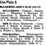 Die Handballer des ASK Vorwärts Frankfurt gewannen in Eberswalde ein Klubturnier um den Pokal der Drushba-Halle mit 6:0 Punkten vor dem Vierten der rumänischen Staatsliga, Dinamo Brasov (4:2), sowie vor Chemie Premnitz (2:4) und dem SC Dynamo Berlin (0:6). Auch ohne seine Nationalspieler Engel, Schmidt, Smuch und Grüner war der ASK Vorwärts der Gegnerschaft klar überlegen. Der Turniersieger bezwang den SC Dynamo mit 24:19 (12:11), das durch die Nationalspieler Penu, Licu und Dan Marin verstärkte Brasov mit 27:21 (14:10) und Premnitz mit 30:21 (17:10).Die weiteren Spiele: Brasov gegen Premnitz 24:21 (16:13), Brasov-SC Dynamo 27:22 (16:11), Premnitz gegen SC Dynamo 20:18 (9:9).
