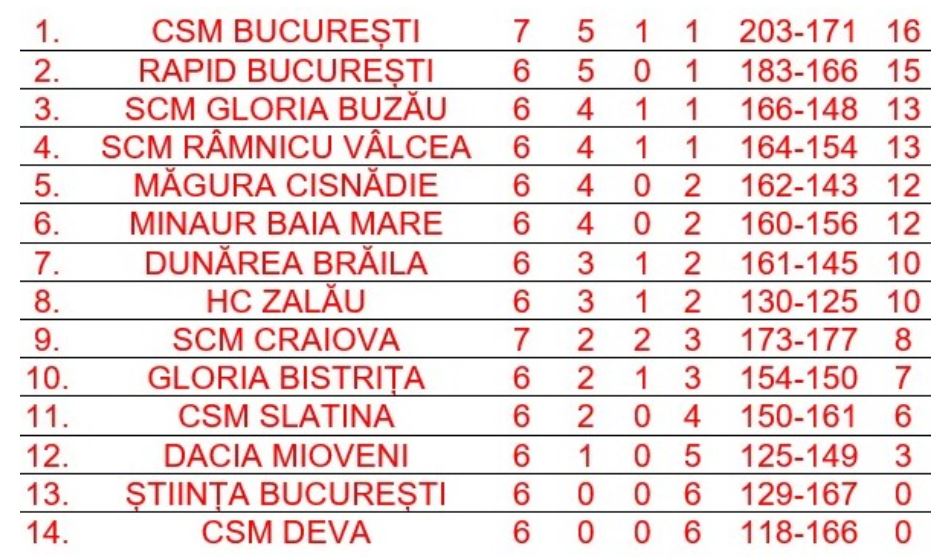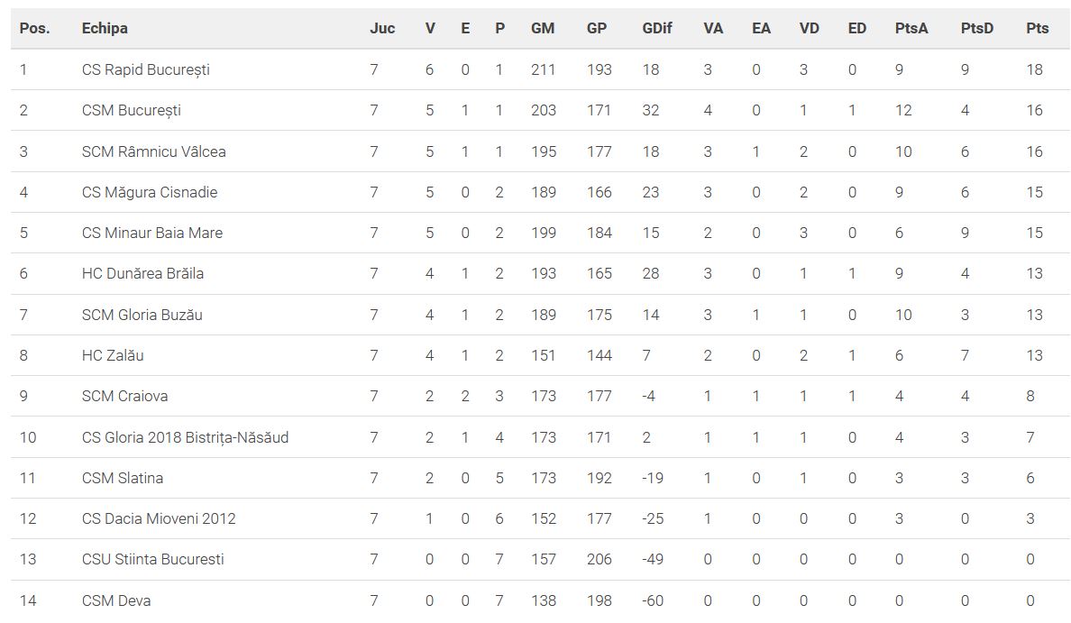 Wie ich schon am Anfang prophezeiht hatte, ist diese Spielzeit sehr ausgeglichen und es gibt mit Rapid Bukarest einen neuen Tabellenführer. Die Papidistinnen profitierten vom Unentschiden zwischen CSM Bukarest und Gloria Buzau.
