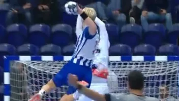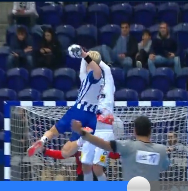 Hier die Szene beim Spiel Porto:Magdeburg, wo der Kopftreffer passiert.