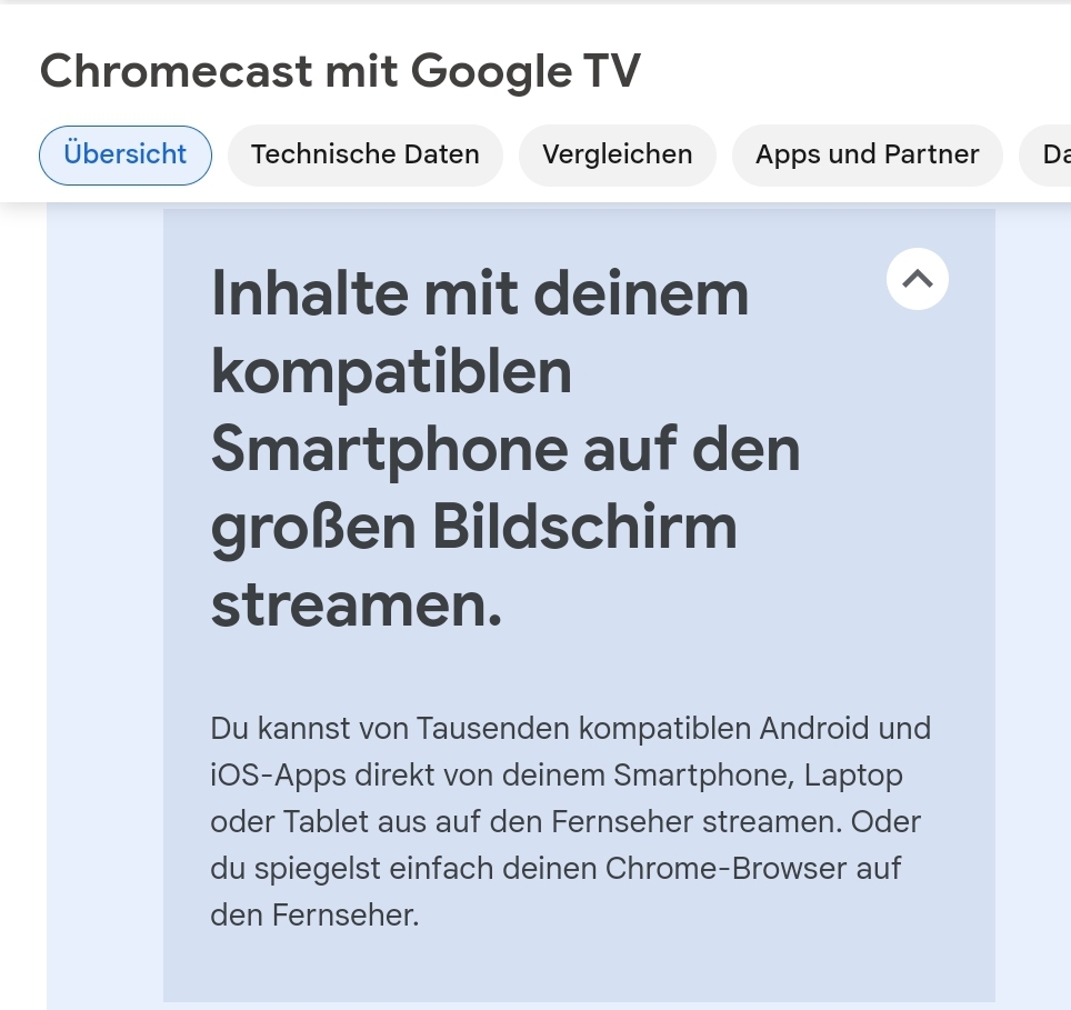 Mit der Aussage verwirrst Du ganz sicher einige User, die hier nur mitlesen um sich Infos und Anregungen zu holen. Ich würde mich selbst als halbwegs kundigen User, aber dennoch als Laie bezeichnen und nutze schon länger einen Chromecast-Dongle der 3. Generation. Das Thema Chromecast zieht sich hier schon länger hin und wirft immer wieder Fragen auf.