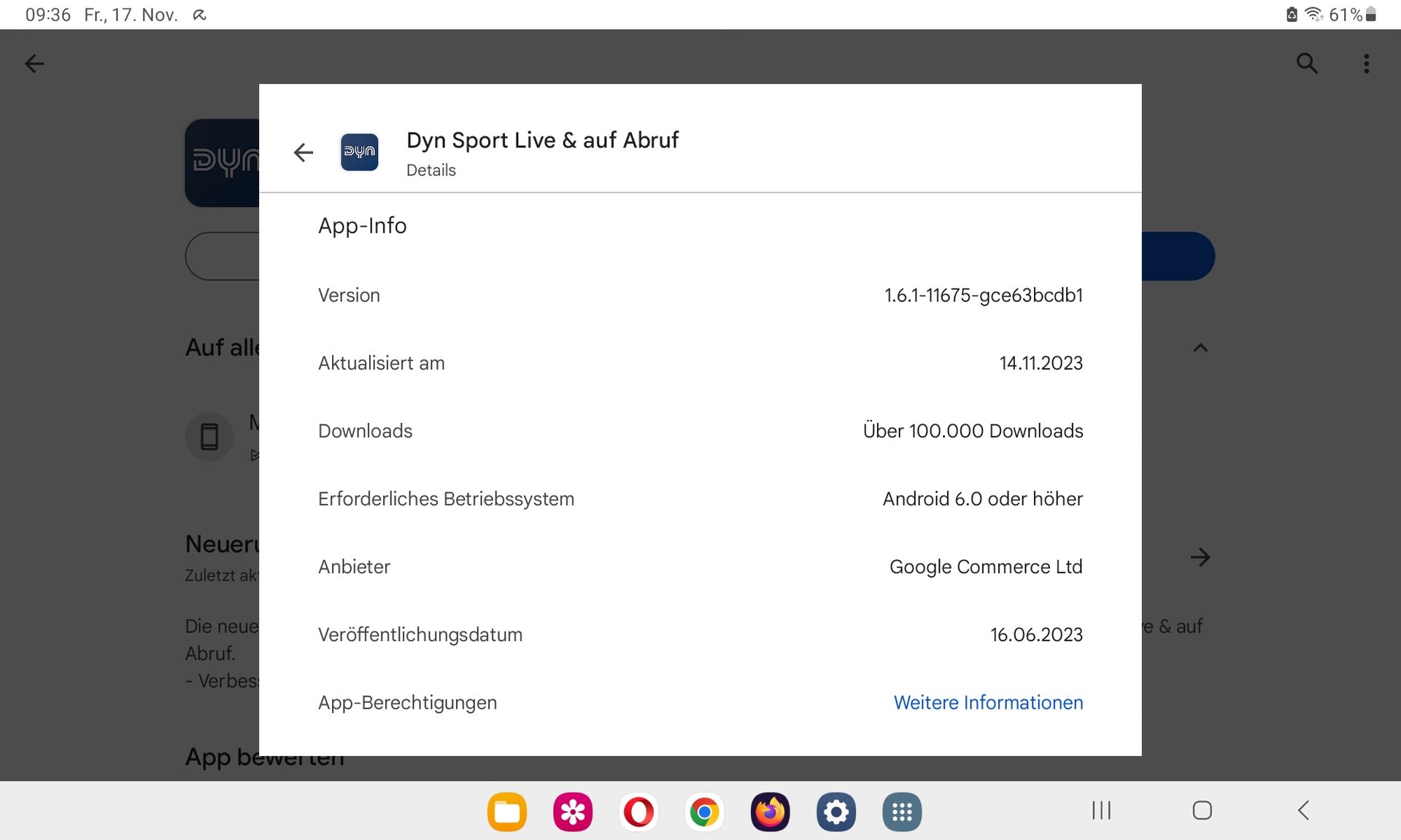 • Auf der Website von DYN steht etwas anderes als in der "App-Info". Dort heißt es, "Erforderliches Betriebssystem Android 6.0 oder höher". Das war schon von Anfang an so.