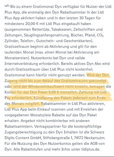 €dit: 9,99€ monatlich kündbar wären über Lidl dann wohl der neue Standardpreis - schön blöd, wer über Dyn ein Abo abschließt..