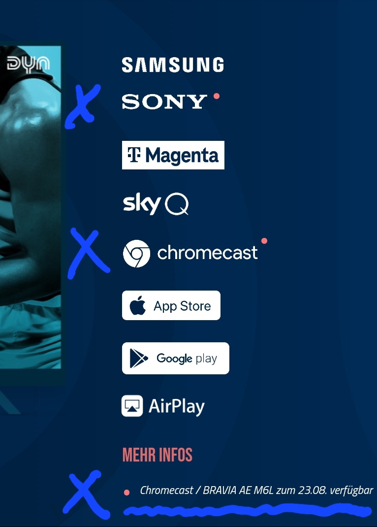 Dass die LG-Fernseher mit ihrem speziellen WebOS noch keine Dyn-App haben, überrascht mich nicht besonders. Aber dass ich mit meinem Sony der einzige sein soll, der eine funktionierende Android-TV-App hat, ist erstaunlich. Denn dein Samsung dürfte ja auch Android-TV haben. Oder können die Samsungs nur Apps aus dem Samsung-eigenen AppStore erhalten?