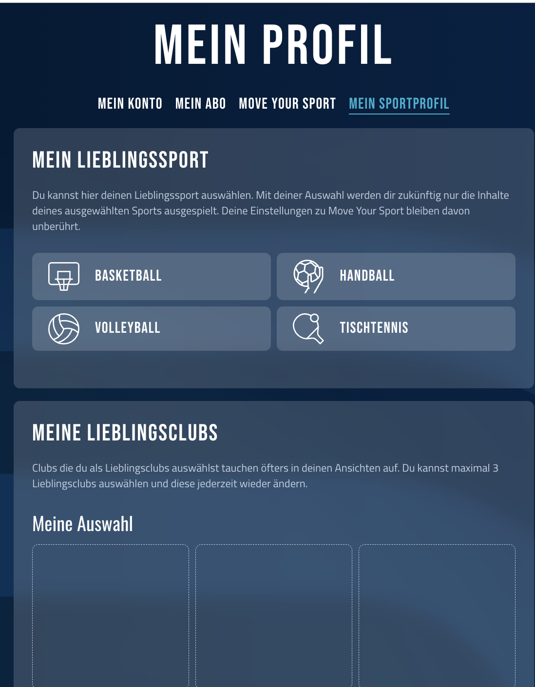 Unter https://profil.dyn.sport/sportprofil kannst jetzt schon Sportarten/Ligen/Vereine auswählen, dies wird mehr und mehr in die Plattform einfließen.