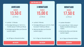 Das sind anscheinend neue, aktuelle Sonderangebote. Wird denn Bestandskunden noch eine Verlängerung des Jahresabos für 12,50 €/Monat offeriert? Oder ist das Angebot abgelaufen?