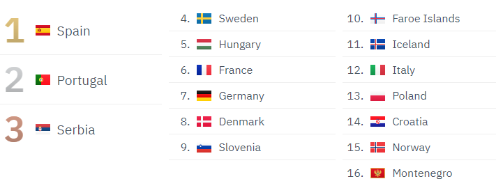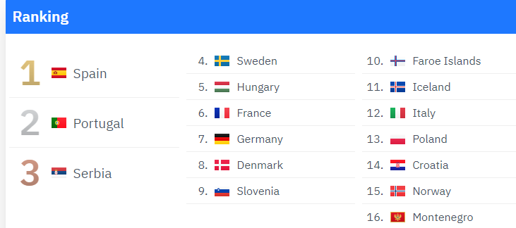 Portugal zweiter. Bestätigt den Trend. Serbien kommt aus dem absoluten Nichts.