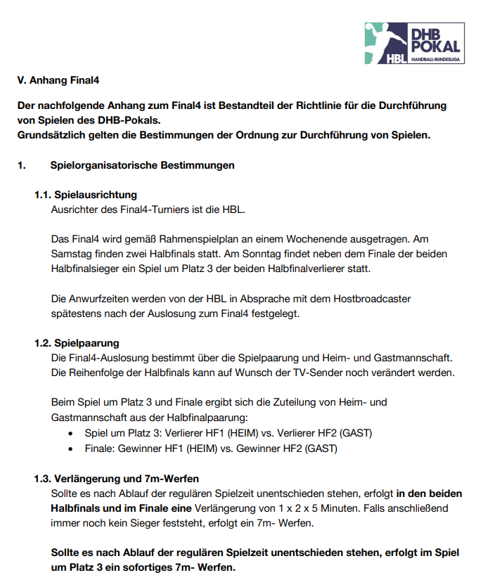 Zu unserem DHB-Pokal. Es geht hier sicher um das Final Four, da gibt es eine klare Durchführungsbestimmung,