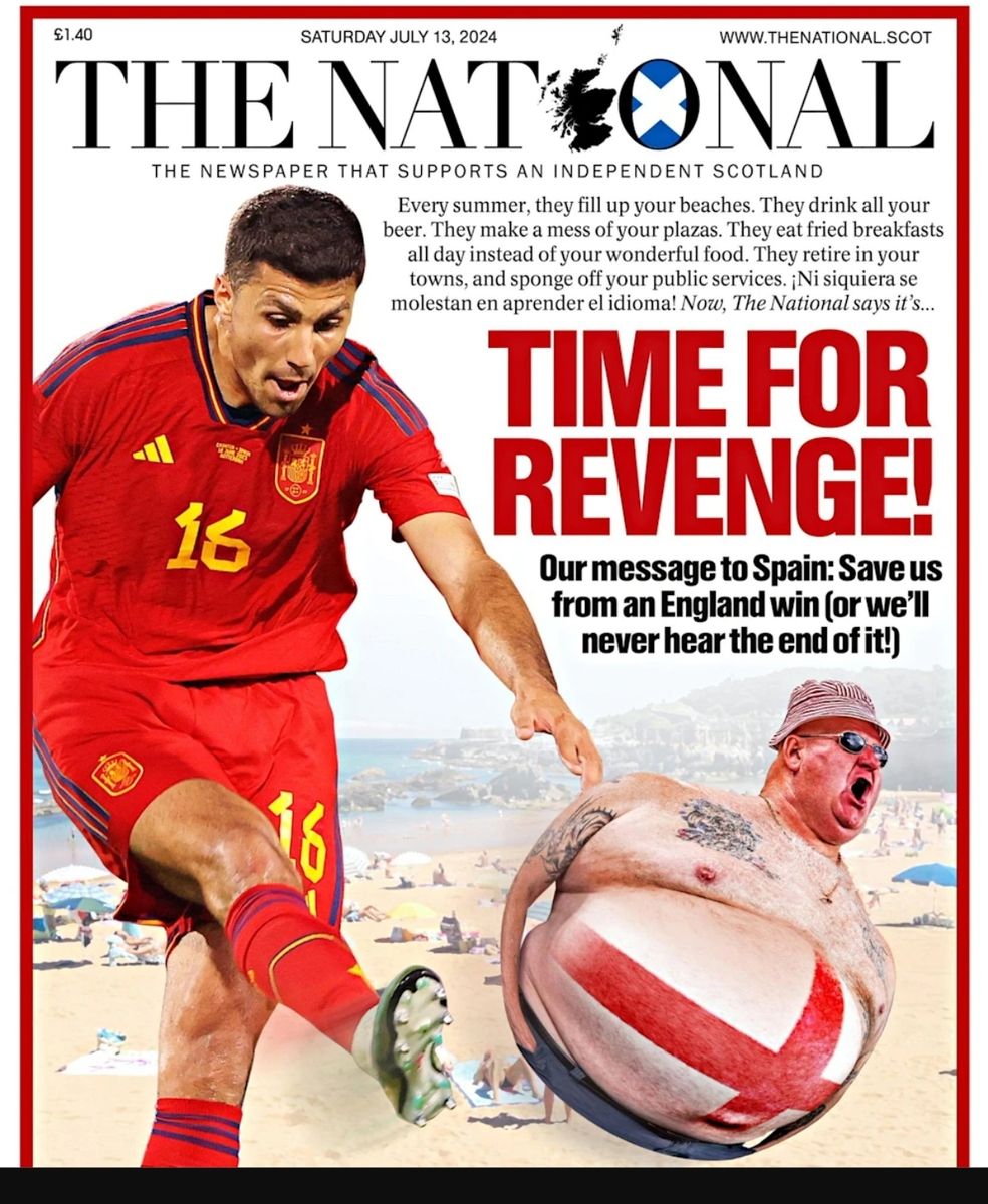 Das heutige EM-Finale findet in den Schlagzeilen der Sonntagszeitungen in England und Spanien natürlich Beachtung, auch mit den üblichen Wortspielen. Einen netten, kleinen Seitenhieb aus Schottland, konnte ich bisher nicht entdecken.