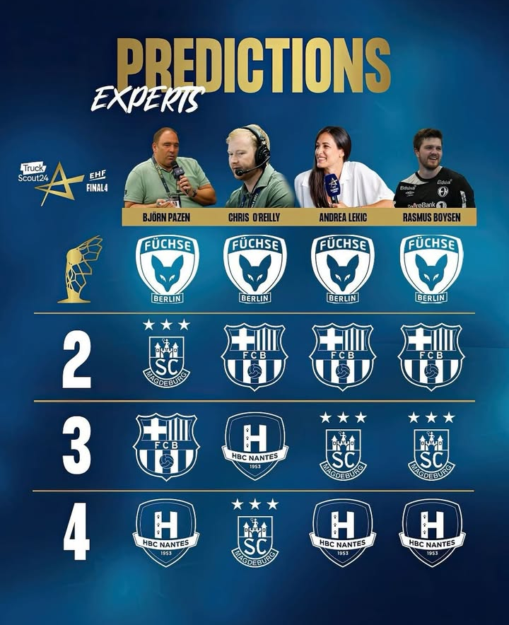 Ist aber auch relativ schwer zu tippen. Ich hätte Füchse gegen Nantes als Sieger getippt und den Sieger Barcelona/Magdeburg als Sieger am Sonntag und den Verlierer als Dritten. Da wäre im Zweifel auch nur ein Tipp richtig gewesen.
