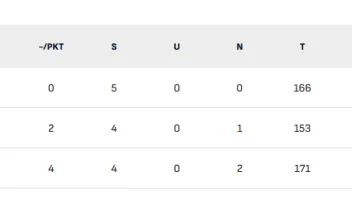 6. Die Form-Serie in der Tabelle stimmt ebenfalls nicht: Wir haben Gewonnen - Verloren - Gewonnen - Gewonnen - Gewonnen. Hier ist es falsch gelistet als erst eine Niederlage und dann 4 Siege.