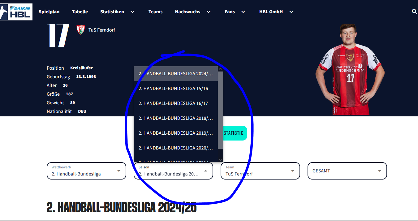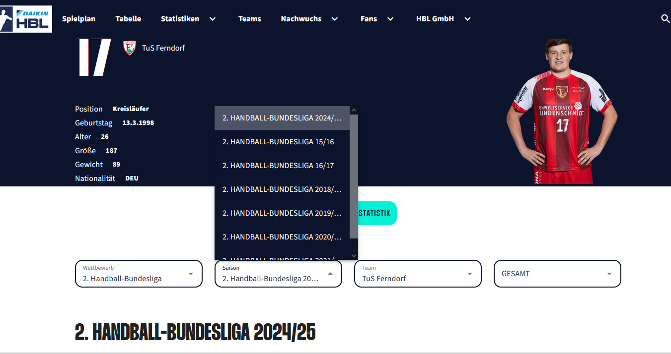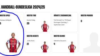 3. Auf sämtlichen Spielerseiten fehlt die komplette Karriere-Statistik. Das war immer einer der großen Mehrwerte der HBL-Homepage. Man kann zwar die einzelnen Saisons abrufen, aber nicht die Gesamt-Statistik. Warum? Das ist ein erheblicher Rückschritt. Ich hoffe wirklich sehr, dass diese Datensätze nicht verlorengegangen sind....