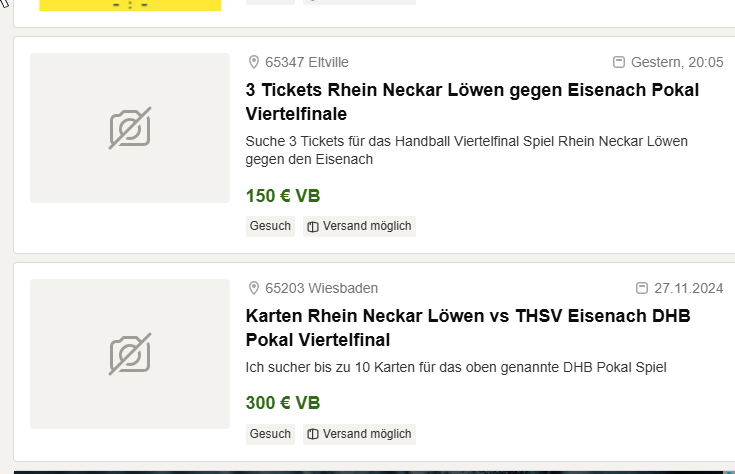 Ja, was dann auf diese Gesuche für Angebote kommen, sieht man natürlich nicht. Darum kann der Verein da auch nichts machen.
