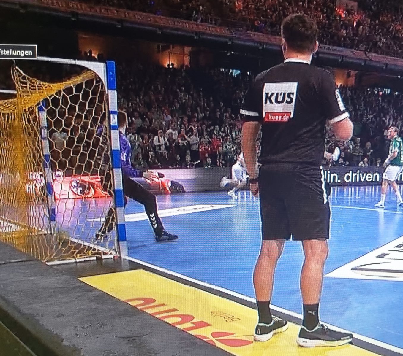 Foerderfuchs hat dankenswerterweise ein Bild geschickt. Ich habe mal die Szene von DYN übernommen und da auch den Torschiedsrichter mit eingefügt. Er stand an der Torlinie und war leicht vorgebeugt, er muss es gesehen haben (also Tatsachenentscheidung). So wie die Perspektive hier aussieht, ist der Ball nicht wirklich komplett hinter der Linie, aber das kannst du nur auf der Perspektive Torlinie (von der erhöhten Seite) oder der Querlatten-Kamera erkennen. Nebenbei, dass war in der 39. Minute passiert. Also bitte, die Füchse hätten 21 Minuten Zeit gehabt, um das Ergebnis wieder auszubauen.