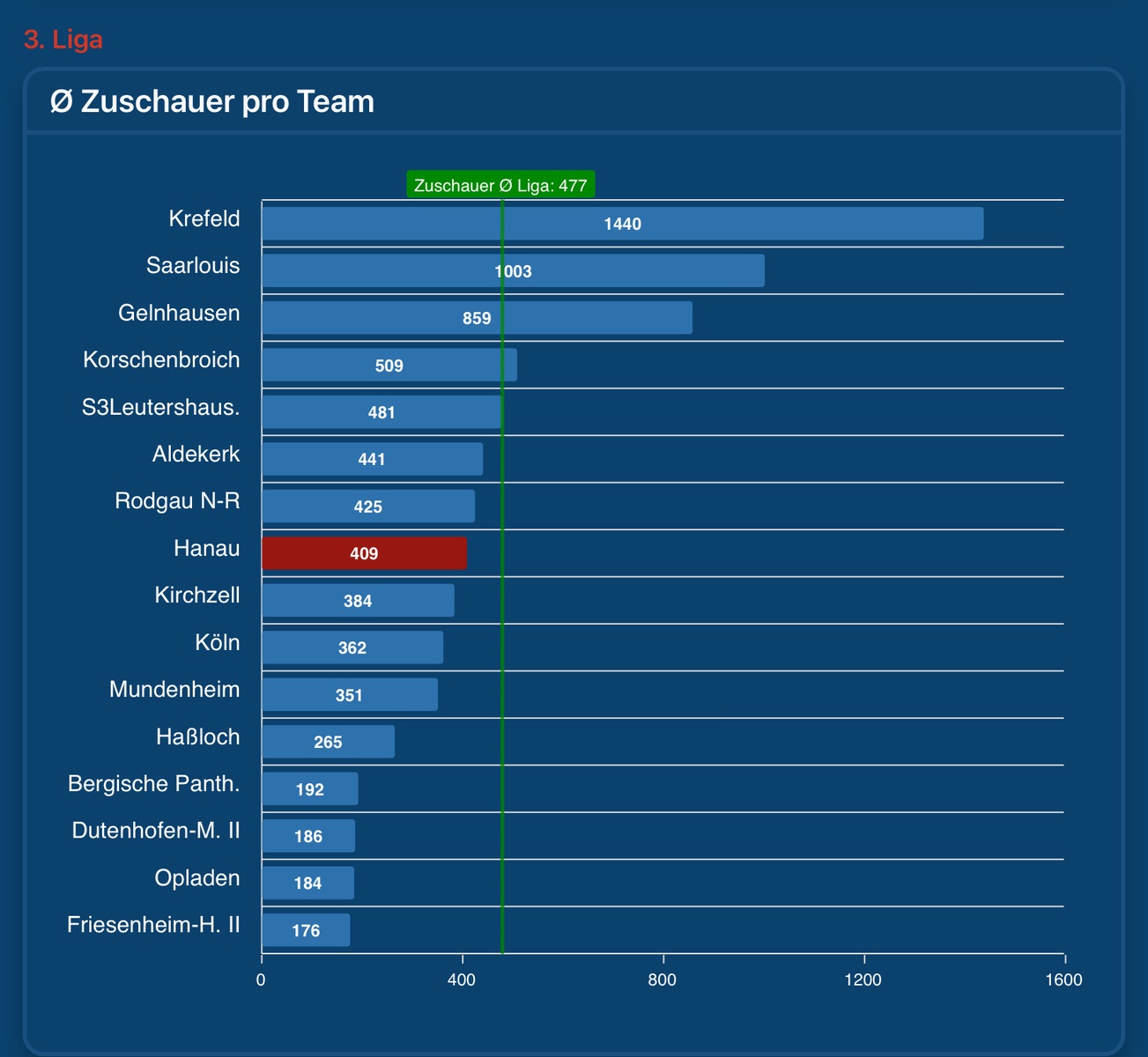 wobei Krefeld den Schnitt mit dem Spiel gegen Korschenbroich mit 5.300 nach oben getrieben hat. Bei diesem Spiel mit 1.000 kalkuliert und sie haben einen ähnlichen Schnitt wie Saarlouis... aber dennoch über 1.000!