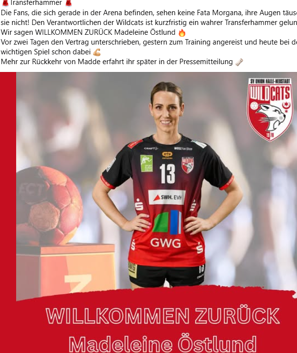 halle mit Rückkehrerin Madeleine Östlund. Ich frag mich was da gelaufen ist. Hat Östlund beim Warmmachen am Zeitnehmertisch ihren Vertrag unterschrieben?