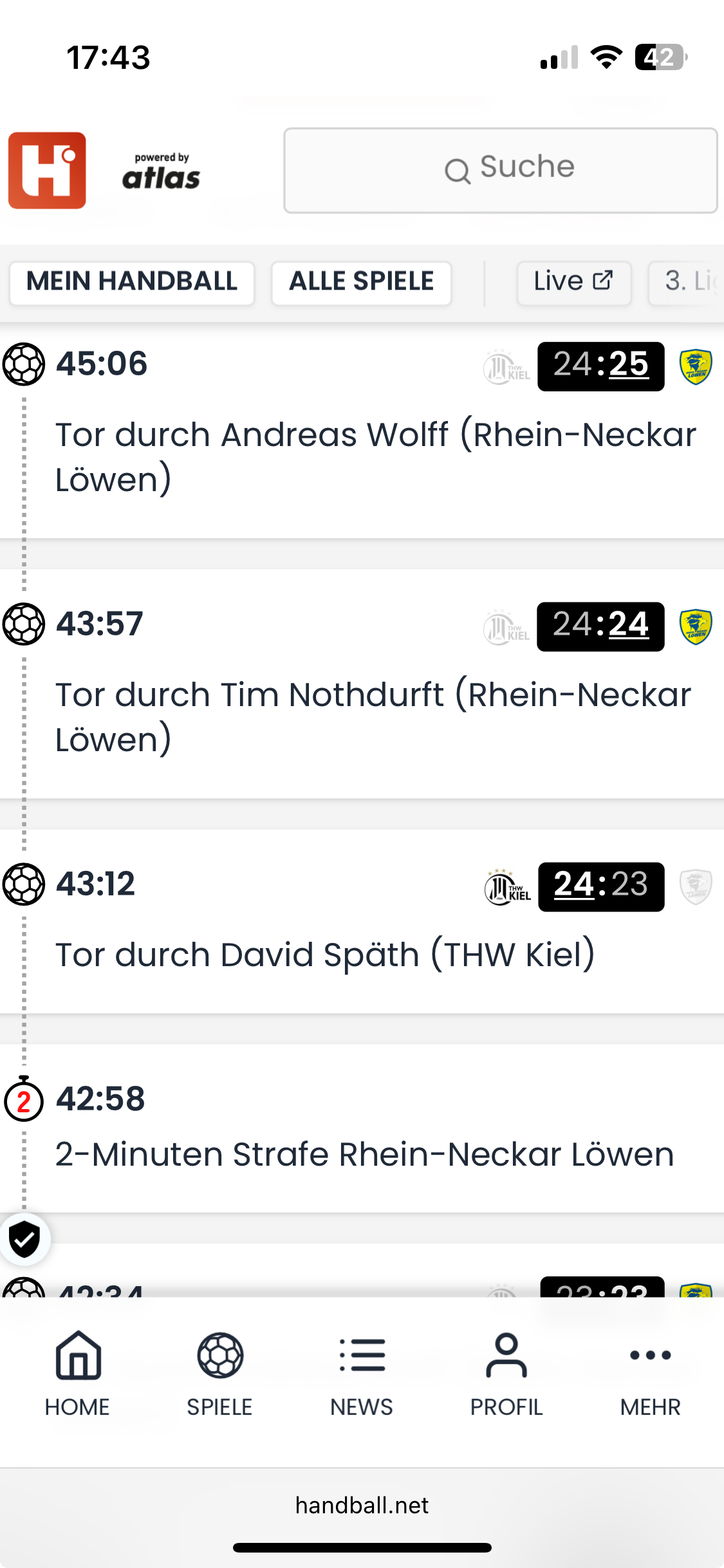 Handball.net kann ich nicht empfehlen, oder ich verpasse da gerade spektakuläre Wechsel und Spielzüge…