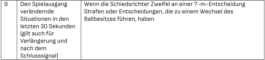 • In den letzten 30 Sekunden können die Schiedsrichter quasi jede Spielsituation per Videobeweis überprüfen, die ihnen unklar erscheint.
