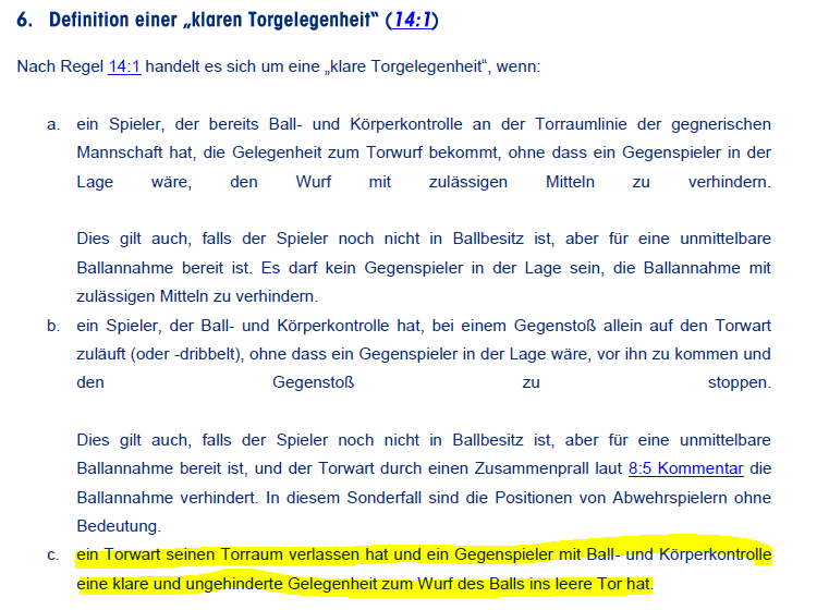 Deswegen verwundert es mich gerade um so mehr, dass dir die Regelauslegung für klare Torgelegenheit bei leerem Tor nicht bewusst ist.