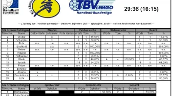 Torschützen TBV Lemgo: Stephan (8/5), Schwarzer (8), Zerbe (5), Baumgartner (5), Kehrmann (3), Binder (2), Lima (2), Baur (3).